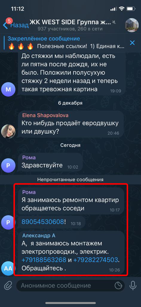 Реклама размещается в группах (чатах) жильцов в Телеграмм. Реклама закрепляется вверху каждой группы на месяц. Каждый пользователь заходя в группу постоянно видит закрепленное сообщение.